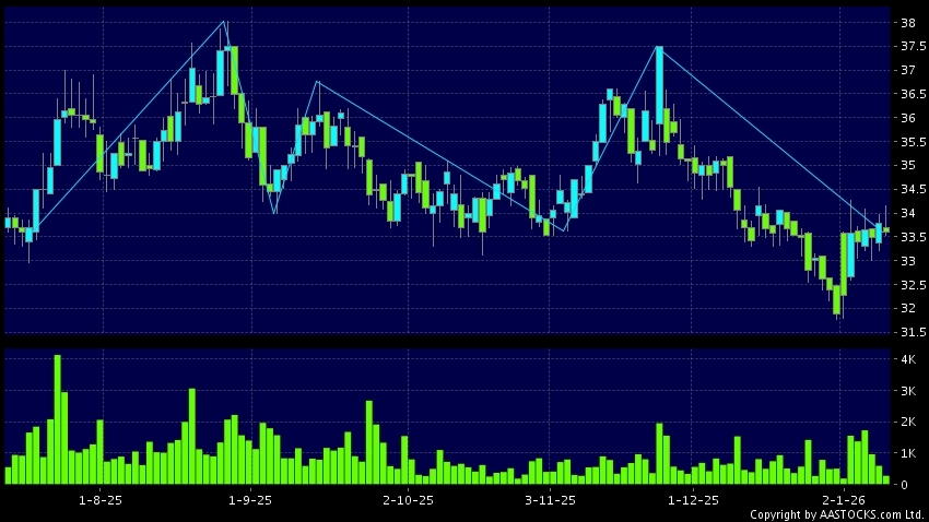 三重頂指股票上升至三個相近的高位後,開始下跌,然後形成下降趨勢,屬利淡訊號。三個高點成為一個阻力位,難以升破。(港股報價延遲最少十五分鐘。沽空資料截至 2026-01-16 16:25。)