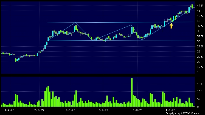 區域突破指股價在過去的一段時間只在一個範圍在內活動,然後股價上升作出突破,升穿區域的頂部,技術走勢向好。(港股報價延遲最少十五分鐘。沽空資料截至 2025-10-06 16:25。)