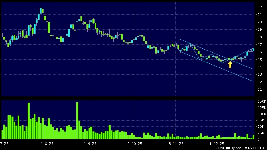 區域突破指股價在過去的一段時間只在一個範圍在內活動,然後股價上升作出突破,升穿區域的頂部,技術走勢向好。(港股報價延遲最少十五分鐘。沽空資料截至 2025-12-31 12:25。)