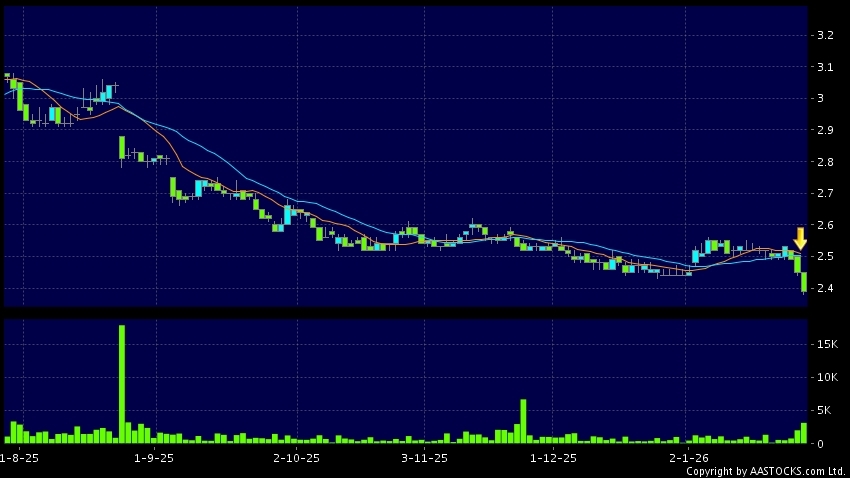 免責聲明:以上金融市場數據、報價、圖表 及/或各種技術分析指標乃根據公開資料分析和演釋自動生成的,僅作參考使用。此類自動生成的內容並不代表AASTOCKS.com Limited的立場。AASTOCKS.com Limited並不保證其準確性、完整性、實時性或者正確性。閣下應諮詢獨立專業意見,以核實定價資料或獲取更詳細的市場信息及須為所有跟隨此類自動生成的內容執行的交易或使用該內容負責。