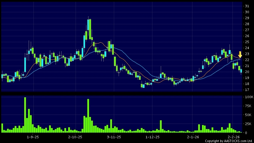 死亡交叉是一個利淡信號,指股價的短期移動平均線跌穿長期移動平均線,例如50天線跌穿250天線,在圖表上構成交叉的形狀。股價通常會下跌形成一個下降趨勢,技術走勢偏軟。(港股報價延遲最少十五分鐘。沽空資料截至 2026-02-27 16:25。)