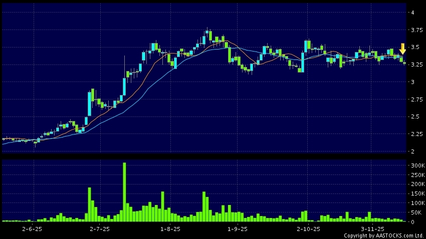 免責聲明:以上金融市場數據、報價、圖表 及/或各種技術分析指標乃根據公開資料分析和演釋自動生成的,僅作參考使用。此類自動生成的內容並不代表AASTOCKS.com Limited的立場。AASTOCKS.com Limited並不保證其準確性、完整性、實時性或者正確性。閣下應諮詢獨立專業意見,以核實定價資料或獲取更詳細的市場信息及須為所有跟隨此類自動生成的內容執行的交易或使用該內容負責。
