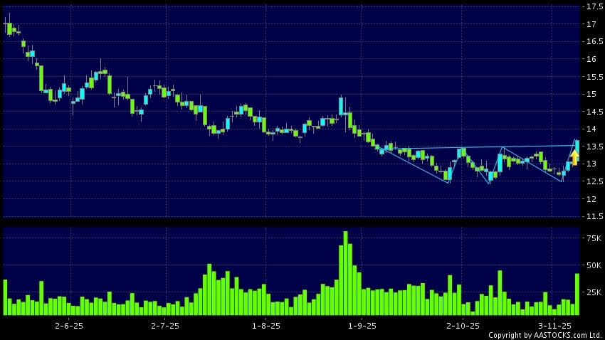 免責聲明:以上金融市場數據、報價、圖表 及/或各種技術分析指標乃根據公開資料分析和演釋自動生成的,僅作參考使用。此類自動生成的內容並不代表AASTOCKS.com Limited的立場。AASTOCKS.com Limited並不保證其準確性、完整性、實時性或者正確性。閣下應諮詢獨立專業意見,以核實定價資料或獲取更詳細的市場信息及須為所有跟隨此類自動生成的內容執行的交易或使用該內容負責。