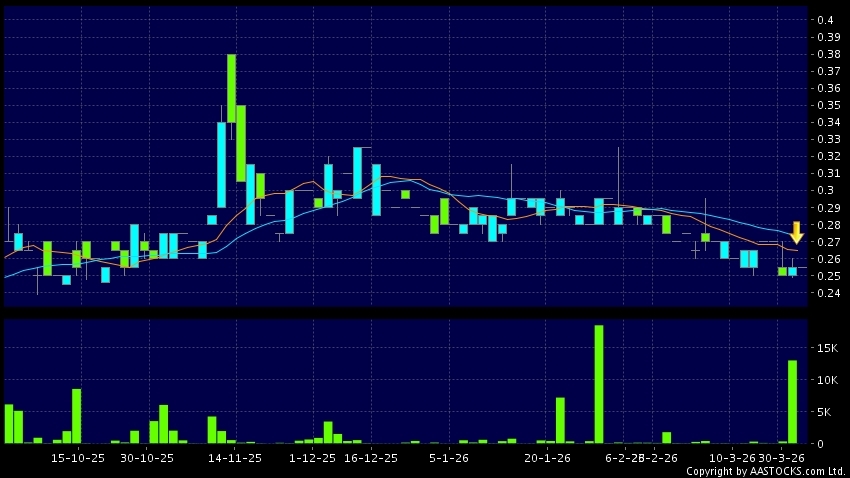 環球戰略集團(08007.HK) -0.060 (-10.526%) 10天移動平均線跌穿20天移動平均線,出現死亡交叉。現價報0.265,上升3.922%,成交量11.00萬股,成交額2.91萬。