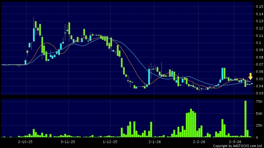 擎華控股(08082.HK) 0.000 (0.000%) 10天移動平均線跌穿20天移動平均線,出現死亡交叉。現價報0.044,上升4.762%,成交量88.00萬股,成交額3.80萬。