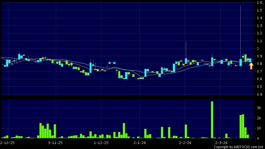 嘉鼎國際集團(08153.HK) 0.000 (0.000%) 10天移動平均線升穿20天移動平均線,出現黃金交叉。現價報0.850,無升跌,成交量0.00股,成交額0.00。