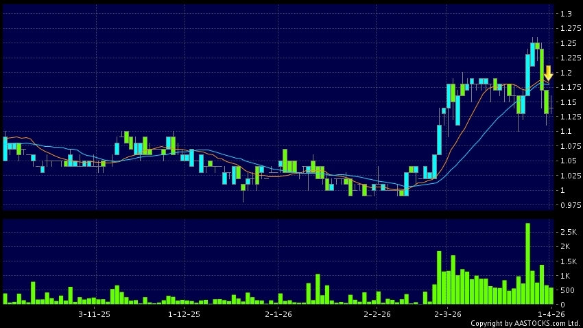 駿傑集團控股(08188.HK) +0.020 (+1.709%) 10天移動平均線跌穿20天移動平均線,出現死亡交叉。現價報1.140,上升0.885%,成交量58.00萬股,成交額66.29萬。