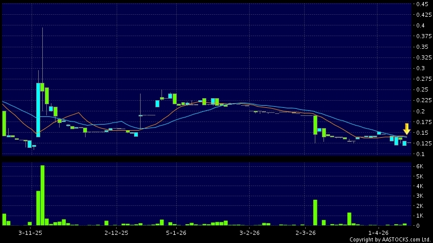 海天天線(08227.HK) -0.001 (-0.781%) 10天移動平均線跌穿20天移動平均線,出現死亡交叉。現價報0.127,下跌1.550%,成交量0.00股,成交額0.00。