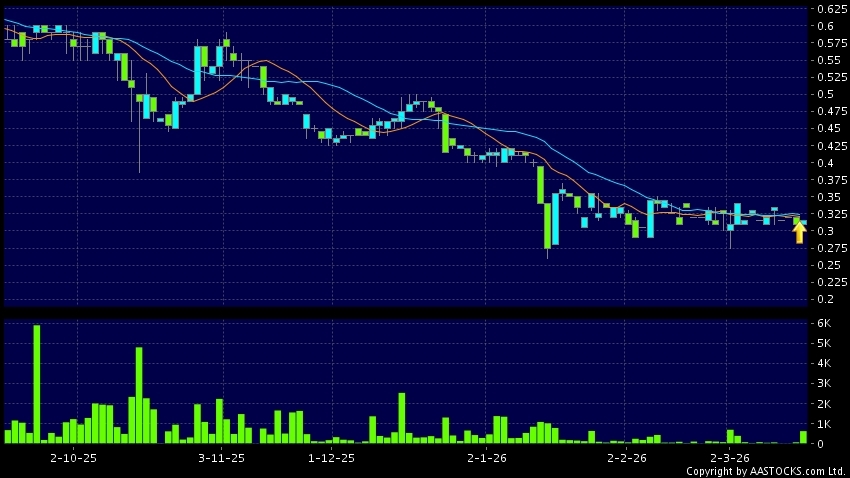 VSING(08292.HK) 0.000 (0.000%) 10天移動平均線升穿20天移動平均線,出現黃金交叉。現價報0.310,無升跌,成交量72.00萬股,成交額22.33萬。