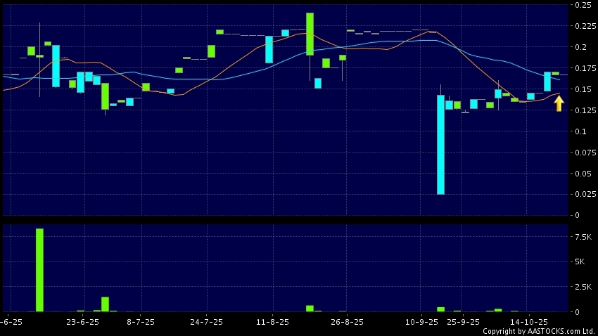 密迪斯肌(08307.HK) 0.000 (0.000%) 10天移動平均線升穿20天移動平均線,出現黃金交叉。現價報0.167,無升跌,成交量0.00股,成交額0.00。