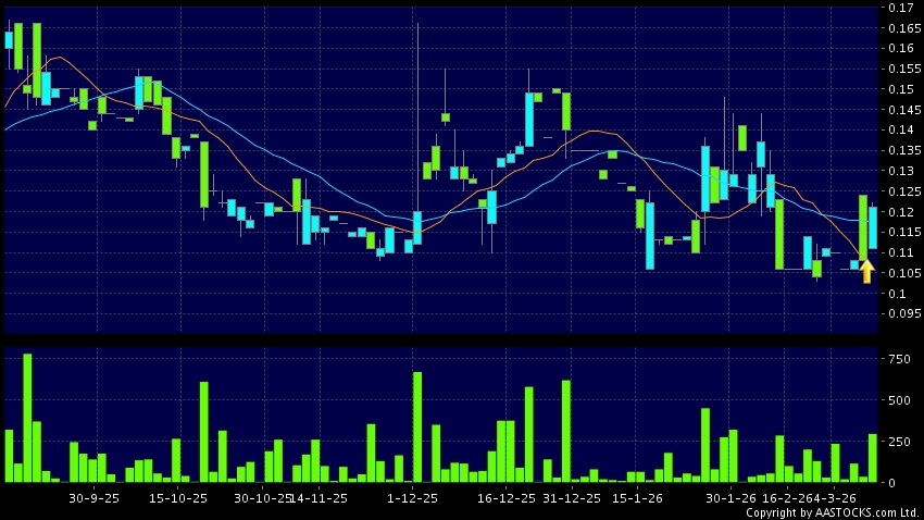 高原之寶(08402.HK) -0.018 (-14.063%) 10天移動平均線升穿20天移動平均線,出現黃金交叉。現價報0.121,上升11.009%,成交量29.50萬股,成交額3.57萬。