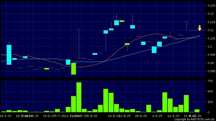 WT集團(08422.HK) +0.004 (+3.670%) 10天移動平均線跌穿20天移動平均線,出現死亡交叉。現價報0.110,無升跌,成交量0.00股,成交額0.00。