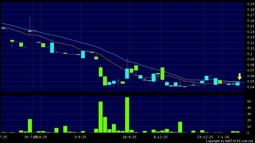 環球友飲智能(08496.HK) 0.000 (0.000%) 10天移動平均線跌穿20天移動平均線,出現死亡交叉。現價報0.048,無升跌,成交量0.00股,成交額0.00。
