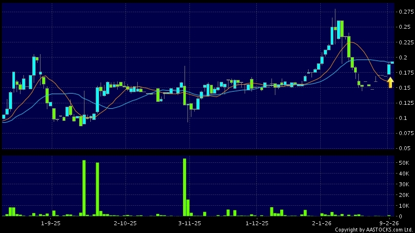 熒德控股(08535.HK) 0.000 (0.000%) 10天移動平均線升穿20天移動平均線,出現黃金交叉。現價報0.193,上升2.660%,成交量4.00萬股,成交額7.66千。