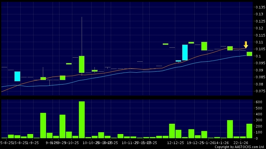 瀛海集團(08668.HK) 0.000 (0.000%) 10天移動平均線跌穿20天移動平均線,出現死亡交叉。現價報0.100,下跌3.846%,成交量24.00萬股,成交額2.41萬。