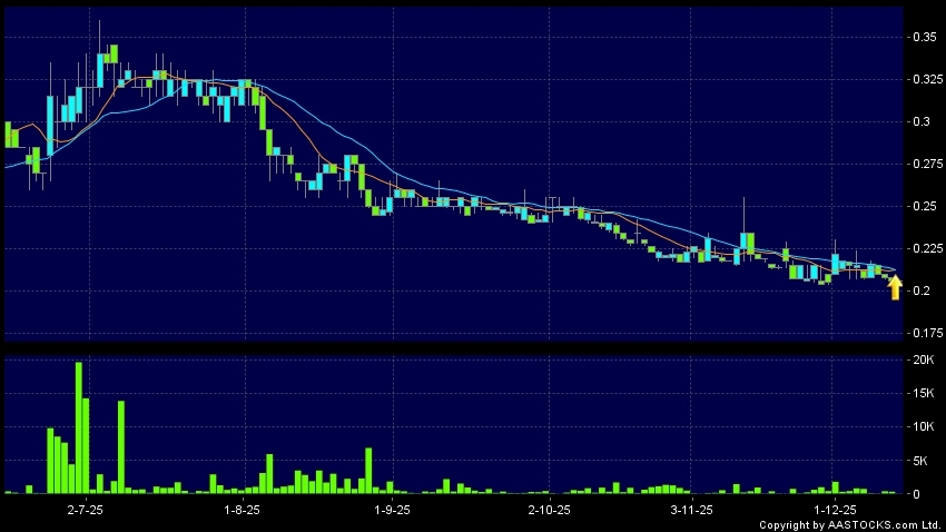 新紐科技(09600.HK) -0.003 (-1.463%) 10天移動平均線升穿20天移動平均線,出現黃金交叉。現價報0.206,無升跌,成交量3.04萬股,成交額6.26千。