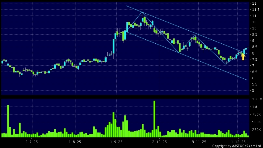 區域突破指股價在過去的一段時間只在一個範圍在內活動,然後股價上升作出突破,升穿區域的頂部,技術走勢向好。(港股報價延遲最少十五分鐘。沽空資料截至 2025-12-08 16:25。)