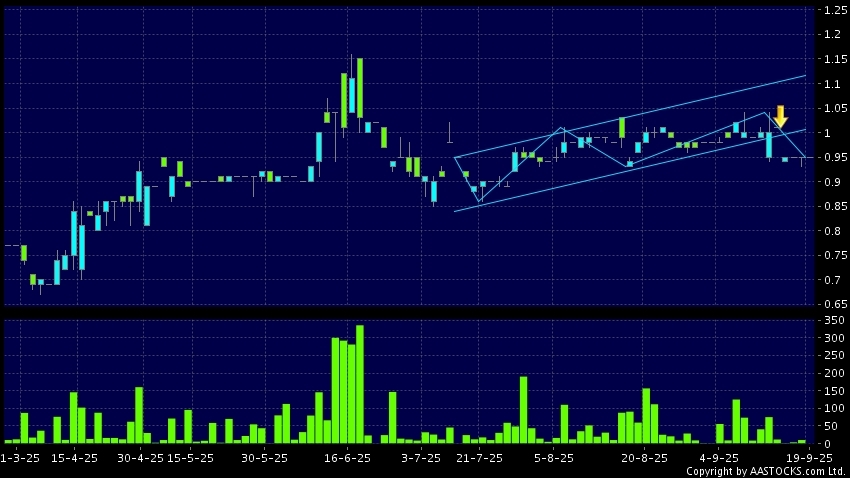 區域突破指股價在過去的一段時間只在一個範圍在內活動,然後股價下跌作出突破,跌穿區域的底部,技術走勢偏軟。(港股報價延遲最少十五分鐘。)