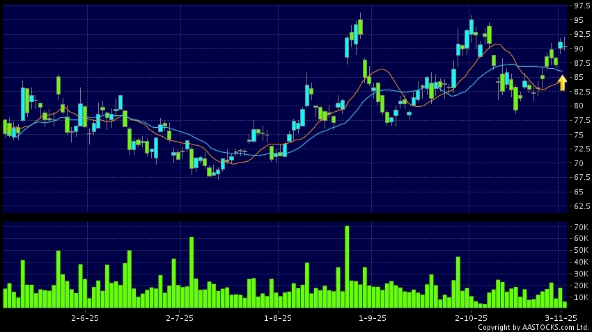 黃金交叉是一個利好訊號,指股價的短期移動平均線升穿長期移動平均線,例如50天線升穿250天線,在圖表上構成交叉的形狀。股價通常會上升形成一個上升趨勢,技術走勢向好。(港股報價延遲最少十五分鐘。沽空資料截至 2025-11-04 16:25。)