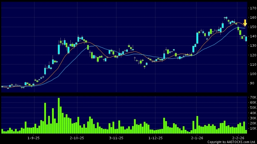 死亡交叉是一個利淡信號,指股價的短期移動平均線跌穿長期移動平均線,例如50天線跌穿250天線,在圖表上構成交叉的形狀。股價通常會下跌形成一個下降趨勢,技術走勢偏軟。(港股報價延遲最少十五分鐘。沽空資料截至 2026-02-06 16:25。)