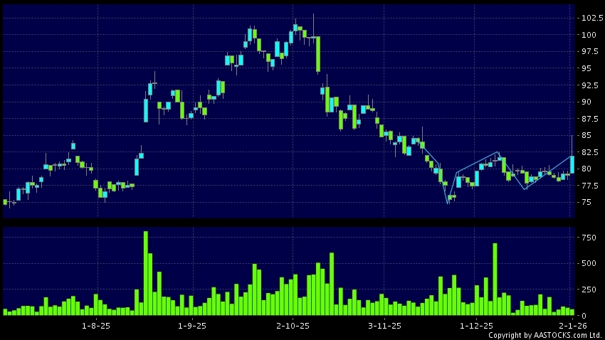免責聲明:以上金融市場數據、報價、圖表 及/或各種技術分析指標乃根據公開資料分析和演釋自動生成的,僅作參考使用。此類自動生成的內容並不代表AASTOCKS.com Limited的立場。AASTOCKS.com Limited並不保證其準確性、完整性、實時性或者正確性。閣下應諮詢獨立專業意見,以核實定價資料或獲取更詳細的市場信息及須為所有跟隨此類自動生成的內容執行的交易或使用該內容負責。