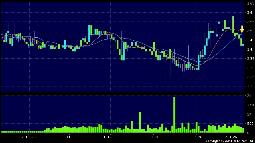 免責聲明:以上金融市場數據、報價、圖表 及/或各種技術分析指標乃根據公開資料分析和演釋自動生成的,僅作參考使用。此類自動生成的內容並不代表AASTOCKS.com Limited的立場。AASTOCKS.com Limited並不保證其準確性、完整性、實時性或者正確性。閣下應諮詢獨立專業意見,以核實定價資料或獲取更詳細的市場信息及須為所有跟隨此類自動生成的內容執行的交易或使用該內容負責。