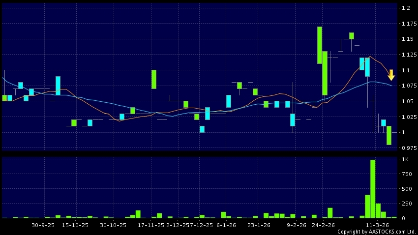 麗年國際(09918.HK) 0.000 (0.000%) 10天移動平均線跌穿20天移動平均線,出現死亡交叉。現價報1.000,上升2.041%,成交量2.20萬股,成交額2.20萬。