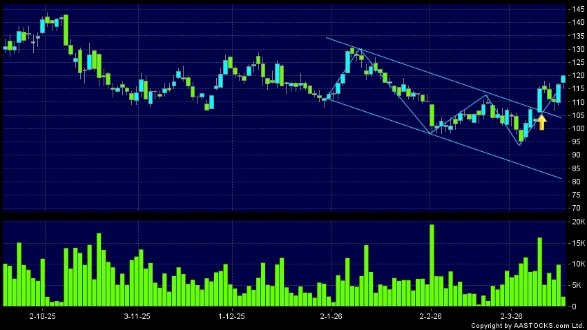 區域突破指股價在過去的一段時間只在一個範圍在內活動,然後股價上升作出突破,升穿區域的頂部,技術走勢向好。(港股報價延遲最少十五分鐘。沽空資料截至 2026-03-24 16:25。)