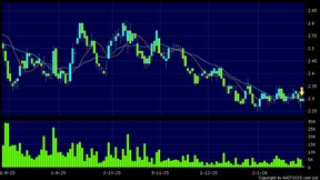 京能清潔能源(00579.HK)呈現三重頂突破向下。現價報2.370,下跌1.660%,成交量4.94百萬股,成交額1.17千萬。最近表現:3日 -1.660%5日 -3.659%10日 -5.200%最近成交統計:上日成交量: 3.57百萬股過去5 天平均成交量: 5.52百萬股技術分析解說:三重頂指股票上升至三個相...