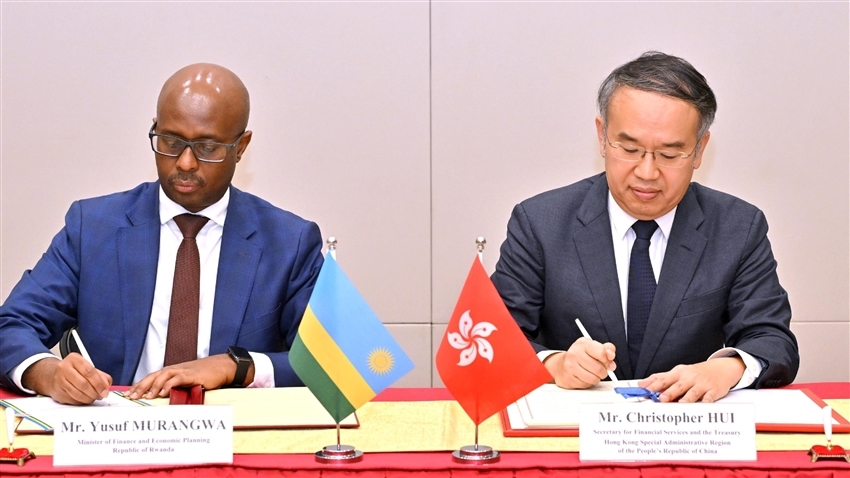 財經事務及庫務局局長許正宇在香港與盧旺達財政和經濟計劃部長Yusuf Murangwa進行雙邊會議,並代表香港政府與盧旺達政府簽署全面性避免雙重課稅協定。