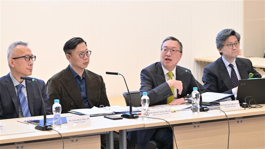 律政司司長林定國上周五(6日)為成立「檢視支持更廣泛應用AI所需的法律配套」跨部門工作小組召開督導委員會會議。律政司副司長張國鈞、保安局局長鄧炳強、公務員事務局局長楊何蓓茵、署理環境及生態局局長黃淑嫻、多個政策局的常任秘書長和副局長,以及其他政府部門首長和代表出席會議。
