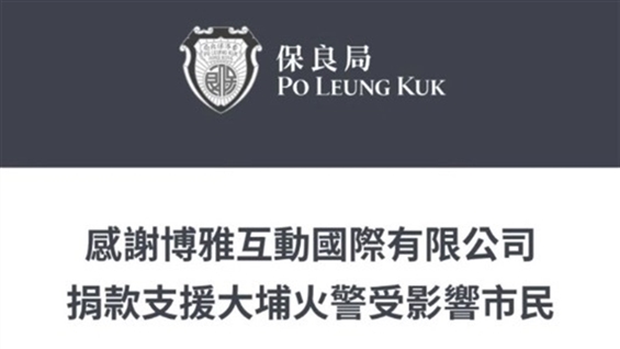 博雅互動(00434.HK) 0.000 (0.000%) 沽空 $67.41萬; 比率 13.219% 宣布,已向「保良局扶弱基金-支援宏福苑火災居民專項戶口」捐贈100萬元以馳援香港大埔災後重建。博雅互動向火災中不幸遇難的同胞表示沉痛哀悼,向所有受災家庭、受傷人士致以誠摯慰問,並向恪盡職守、日夜奮戰的消防及救援人員致以最崇高的敬意。(sl/u)(港股報價延遲最少十五分鐘。沽空資料截至 2025-12-31 12:25。)
