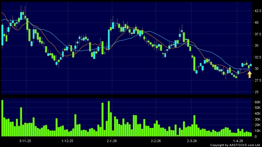 黄金交叉是一个利好讯号,指股价的短期移动平均线升穿长期移动平均线,例如50天线升穿250天线,在图表上构成交叉的形状。股价通常会上升形成一个上升趋势,技术走势向好。(港股报价延迟最少十五分钟。沽空资料截至 2026-04-17 16:25。)