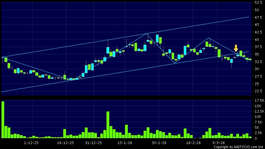 区域突破指股价在过去的一段时间只在一个范围在内活动,然後股价下跌作出突破,跌穿区域的底部,技术走势偏软。(港股报价延迟最少十五分钟。沽空资料截至 2026-04-01 16:25。)