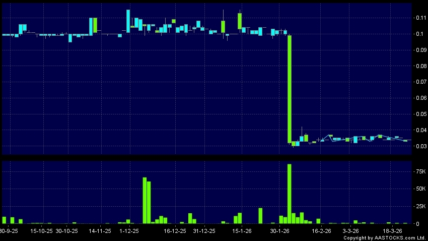声扬集团(08163.HK) 0.000 (0.000%) 呈现三重顶突破向下。现价报0.033,无升跌,成交量0.00股,成交额0.00。