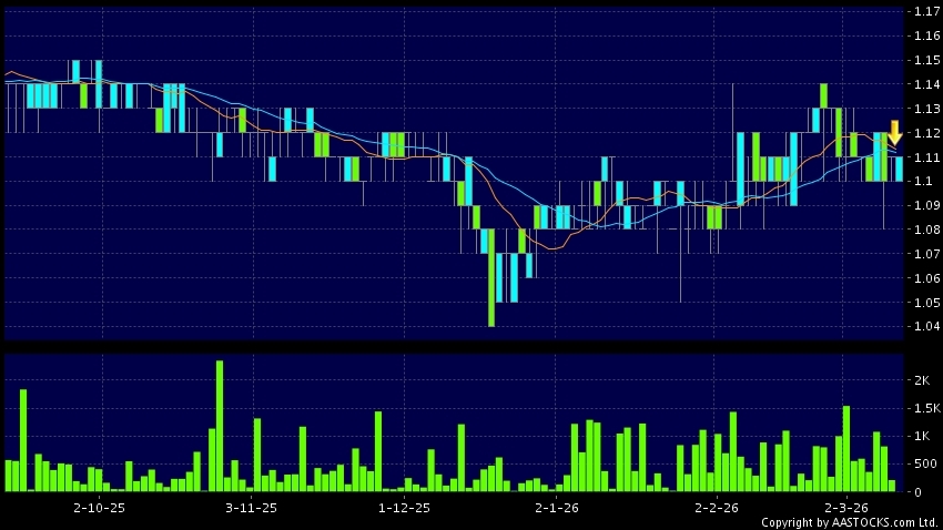 上海實業環境(00807.HK) +0.010 (+0.935%) 10天移動平均線跌穿20天移動平均線,出現死亡交叉。現價報1.110,無升跌,成交量2.00千股,成交額2.20千。