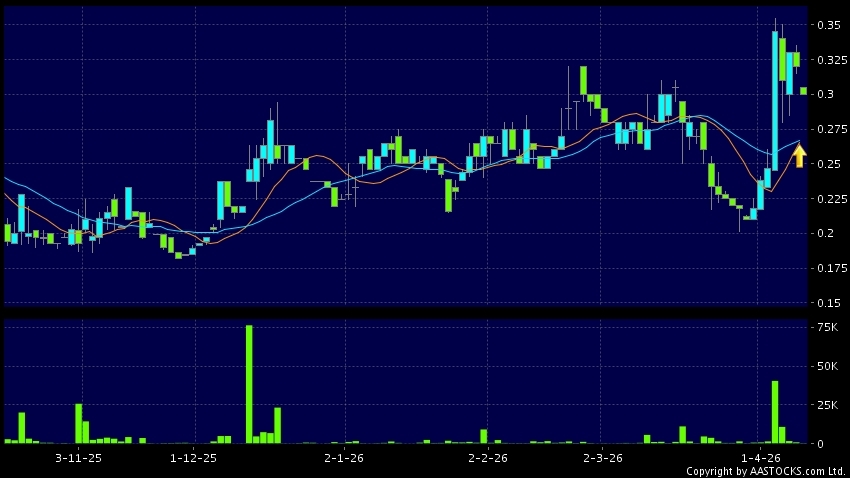 嘉藝控股(01025.HK) 0.000 (0.000%) 10天移動平均線升穿20天移動平均線,出現黃金交叉。現價報0.300,下跌6.250%,成交量27.20萬股,成交額8.20萬。