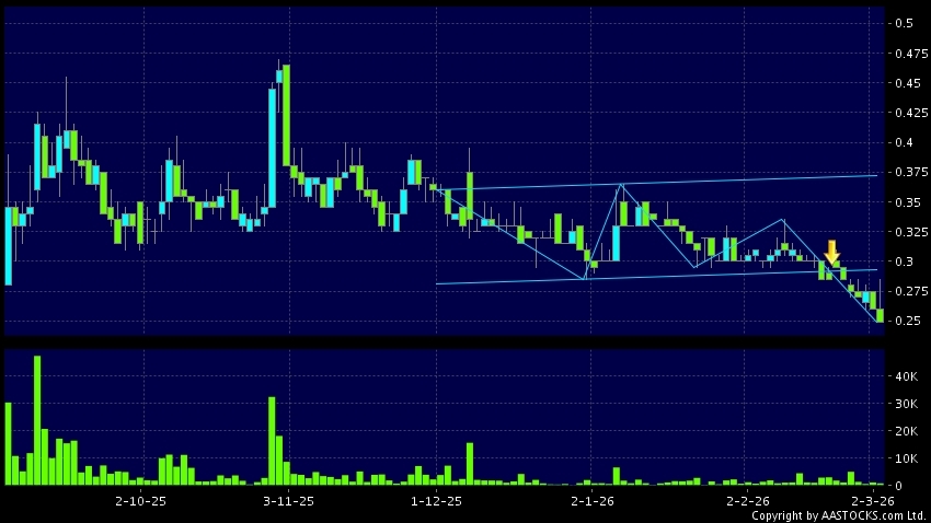 免責聲明:以上金融市場數據、報價、圖表 及/或各種技術分析指標乃根據公開資料分析和演釋自動生成的,僅作參考使用。此類自動生成的內容並不代表AASTOCKS.com Limited的立場。AASTOCKS.com Limited並不保證其準確性、完整性、實時性或者正確性。閣下應諮詢獨立專業意見,以核實定價資料或獲取更詳細的市場信息及須為所有跟隨此類自動生成的內容執行的交易或使用該內容負責。