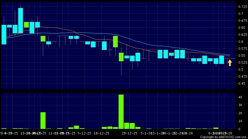 中國匯融(01290.HK) 0.000 (0.000%) 10天移動平均線升穿20天移動平均線,出現黃金交叉。現價報0.540,無升跌,成交量0.00股,成交額0.00。