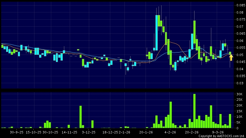 偉鴻集團控股(03321.HK) 0.000 (0.000%) 10天移動平均線升穿20天移動平均線,出現黃金交叉。現價報0.050,無升跌,成交量13.00萬股,成交額6.50千。