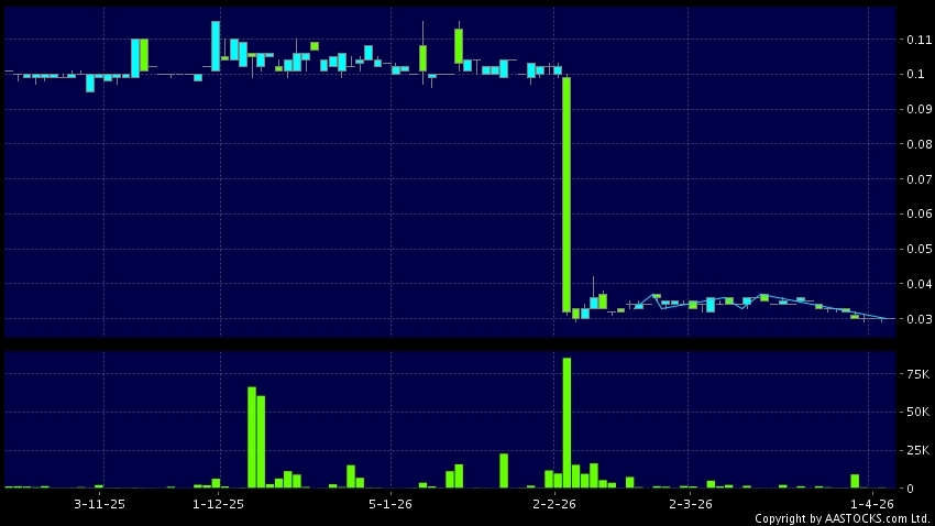 聲揚集團(08163.HK) +0.001 (+2.857%) 呈現三重頂突破向下。現價報0.030,無升跌,成交量0.00股,成交額0.00。