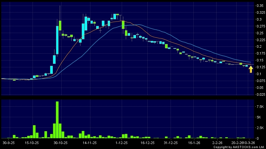 萬里印刷(08385.HK) 0.000 (0.000%) 10天移動平均線升穿20天移動平均線,出現黃金交叉。現價報0.135,無升跌,成交量0.00股,成交額0.00。