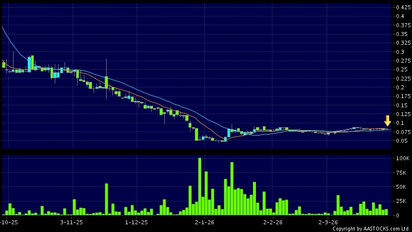 PACIFIC LEGEND(08547.HK) 0.000 (0.000%) 10天移動平均線跌穿20天移動平均線,出現死亡交叉。現價報0.080,下跌1.235%,成交量22.00萬股,成交額1.78萬。