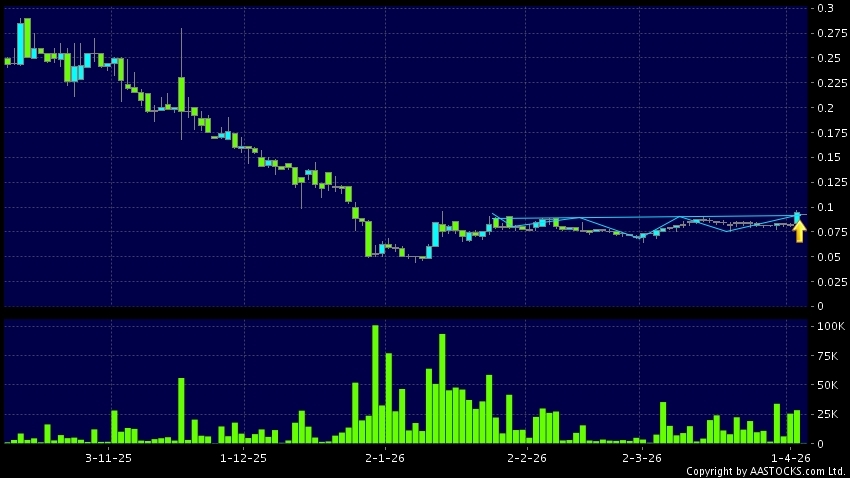 PACIFIC LEGEND(08547.HK) 0.000 (0.000%) 呈現頭肩底向上突破,股價升穿頸線。現價報0.090,下跌4.255%,成交量67.00萬股,成交額6.14萬。
