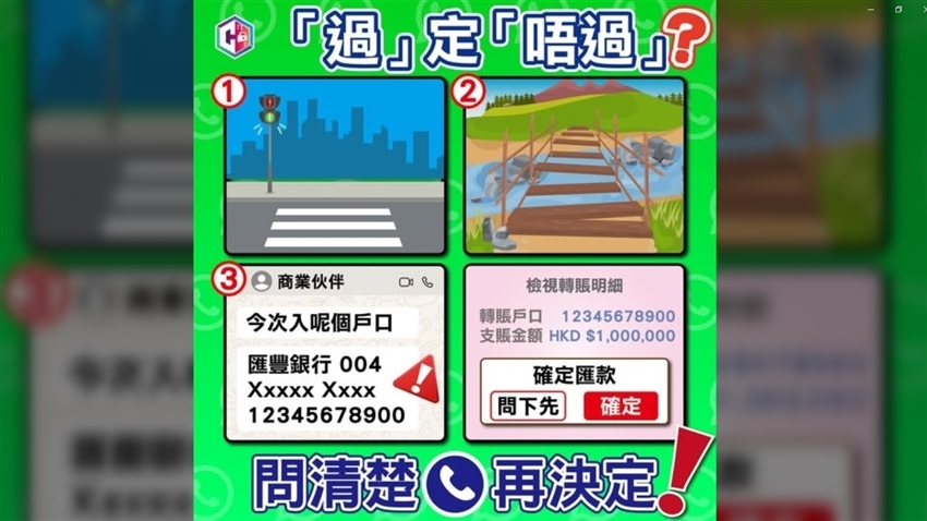 收到任何人透過WhatsApp提出轉賬過數要求,應先致電對方本人核實;