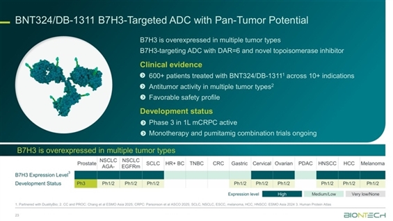 美國ClinicalTrials.gov網站顯示,BioNTech啟動DB-1311/BNT324的首個III期臨床試驗,預計招募736人,將於2031年1月取得結果。BNT324是映恩生物(09606.HK) -3.400 (-1.068%) 沽空 $1.45千萬; 比率 10.029% 開發的一款B7-H3 ADC,於2023年4月被授權至BioNTech,該公司擁有該藥物在中國以外的開發、生產和商業化權益。(sl/j)(港股報價延遲最少十五分鐘。沽空資料截至 2026-02-06 16:25。)相關內容《大行》大摩列出港股焦點股名單(表)