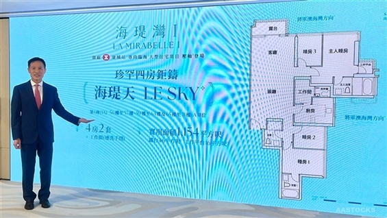 由信置(00083.HK) -0.150 (-1.282%) 沽空 $2.64千萬; 比率 409.386% 、嘉里建設(00683.HK) -0.240 (-1.078%) 沽空 $1.65百萬; 比率 48.464% 、嘉華國際(00173.HK) -0.050 (-2.212%) 沽空 $1.21百萬; 比率 334.844% 、招商局置地(00978.HK) 0.000 (0.000%) 及港鐵(00066.HK) 0.000 (0.000%) 沽空 $4.26千萬; 比率 164.371% 合作發展之日出康城海瑅灣I,涵蓋一房至四房戶型,當中四房大宅命名為「海瑅天LE SKY」,預計將以招標形式推出。信和置業執行董事田兆源表示,「海瑅天」為四房雙套加工作間(連洗手間)的全海景大宅,單位位處海瑅灣I第1座(1A)極高層A單位,全數位於56樓或以上,僅有14伙,實用面積1,154平方呎。相關內容《大行》瑞銀:倘美今年加息 本港樓市及地產股將面臨下行風險 油價上漲衝擊本港零售項目有機會於短期內開放示範單位予傳媒拍攝,並公布進一步銷售部署。(sl/da)(港股報價延遲最少十五分鐘。沽空資料截至 2026-04-02 16:25。)